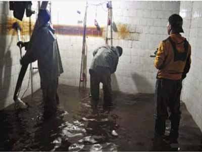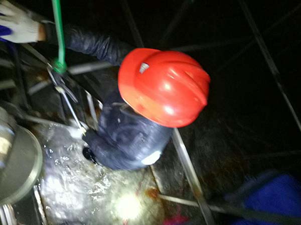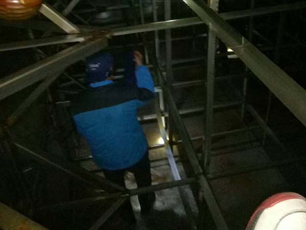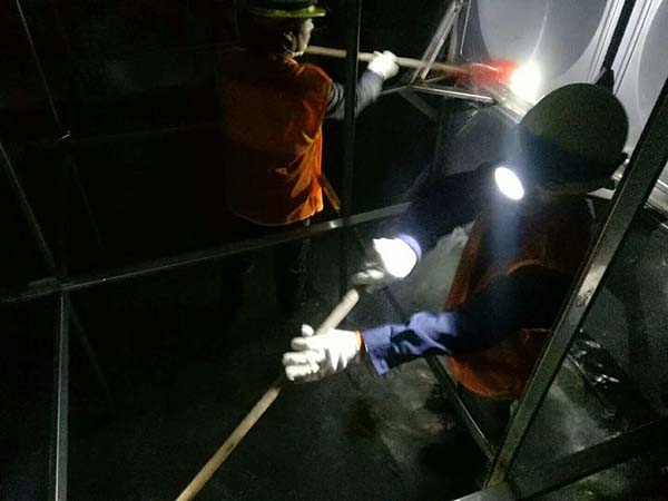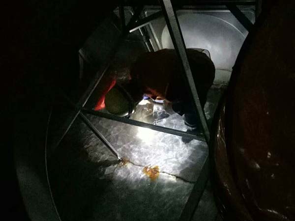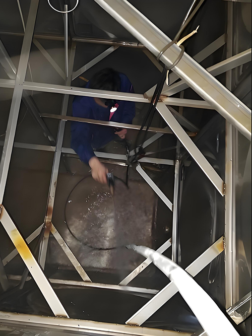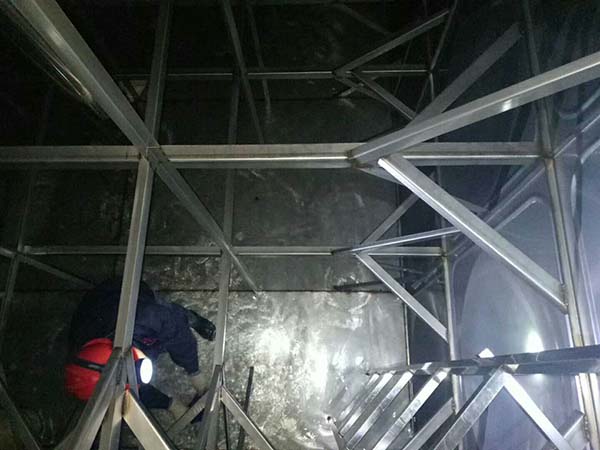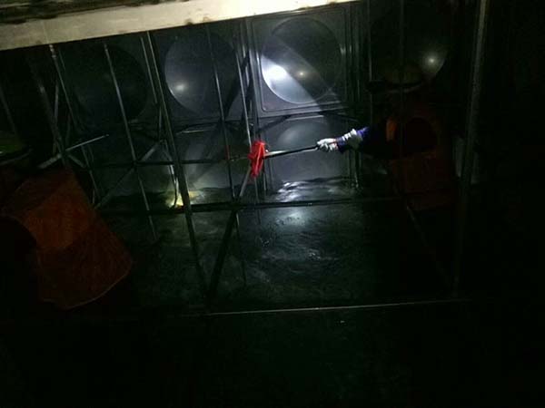 水箱清洗人员用专用工具水笼头进水箱进行冲刷