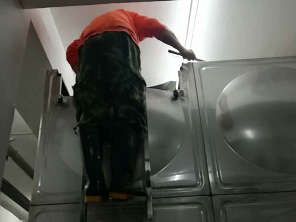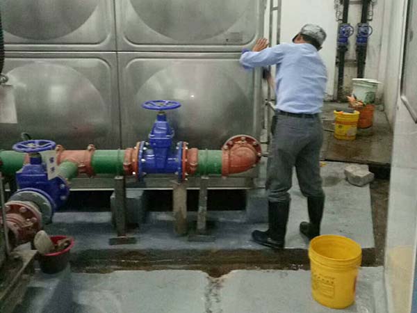 水箱清洗关闭排水阀或潜水泵,并堵塞出水口,防止污物进入。