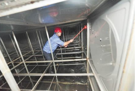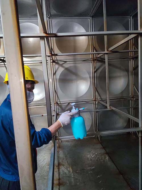 水箱清洗由里向外,均匀地喷涂箱(池)壁表面,可涂刷至入孔口,退出箱(池),盖上孔盖。 水箱清洗洗刷和检查完毕,开排水阀或启动潜水泵,排尽污水并用清水冲清,关闭排水阀或潜水泵。