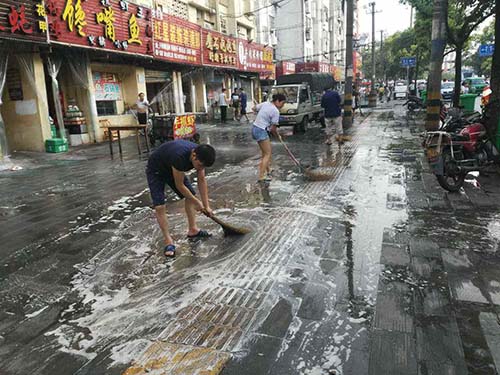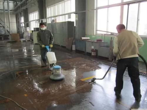 擦洗同时用推水地刮,清除污水,最后可用拖把泡清洁剂拧干后擦洗。