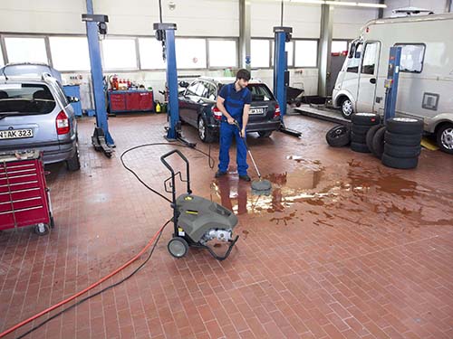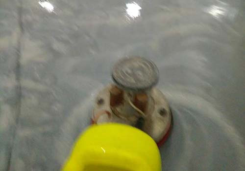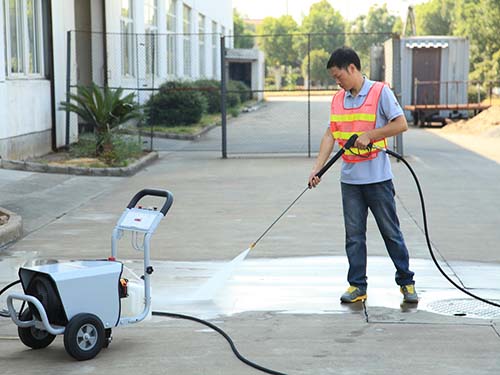 将稀释好的清洗液倒入水桶内,开始操作,从后向前进,按直线行走,这样可避免遗漏,