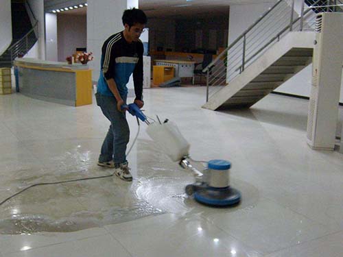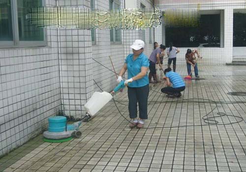 地面清洗是对各种软性硬性地面(大理石、花岗岩、瓷砖、水泥、马赛克、木地板)等进行消毒清洗, 清除地面上的一切污渍,而后进行打醋磨光等专业处理,使污秽的地面迅速恢复光洁。