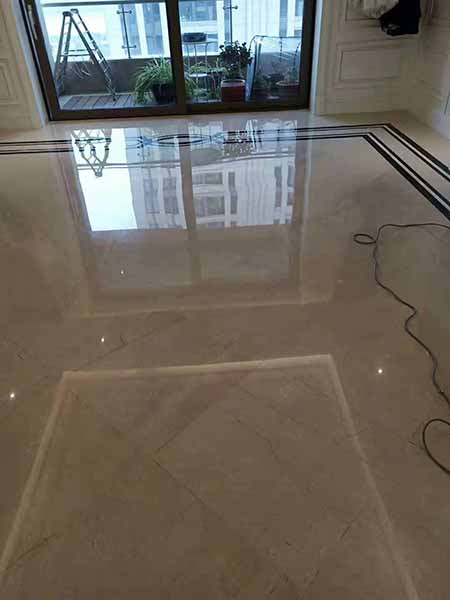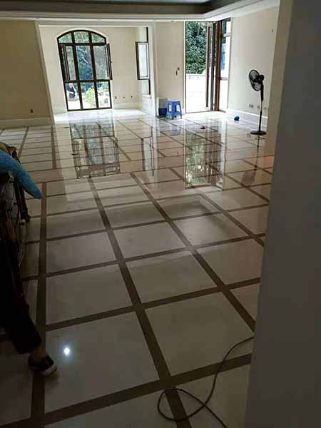 翻新程序全部完成后,用清水洗净并吸干石材表面的水,大理石轻度翻新