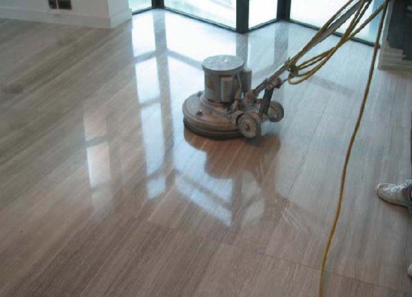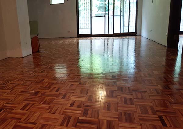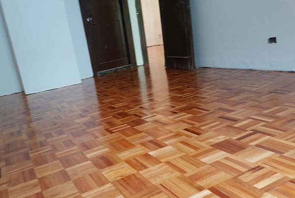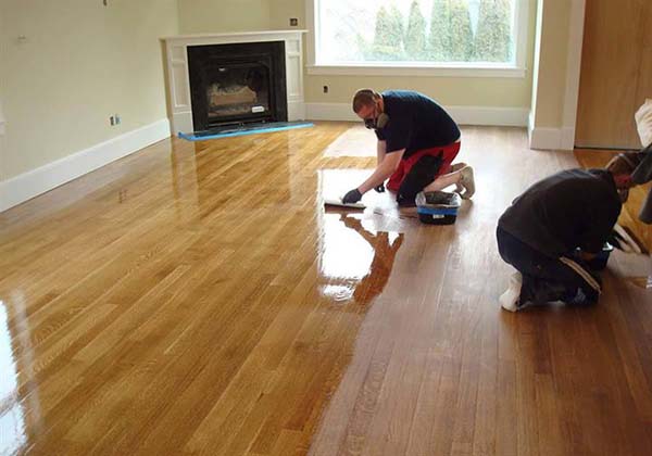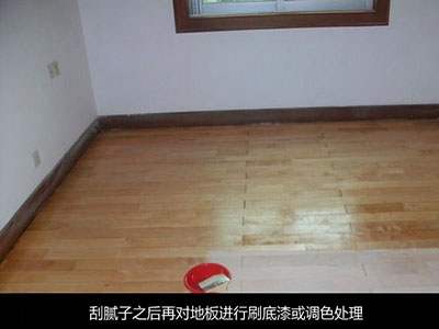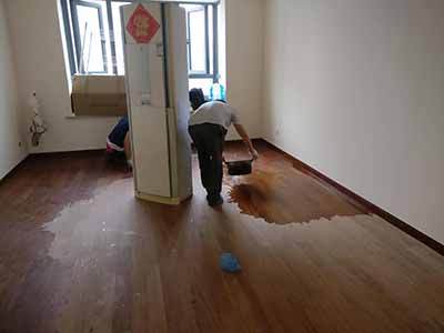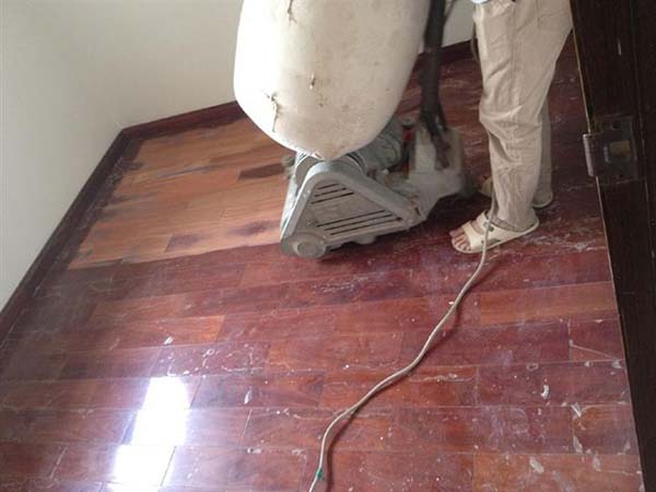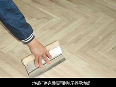 这样才能保证地板的表面细腻、光滑,打磨完毕。抛光打蜡上漆等地板翻新