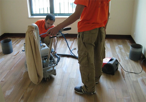 打磨的时候也是需要一些专业的机器,一般要将地板表面打磨掉2厘米 左右的厚度, 但是打磨的时候会有很多的灰尘,所以要做好防护工作。