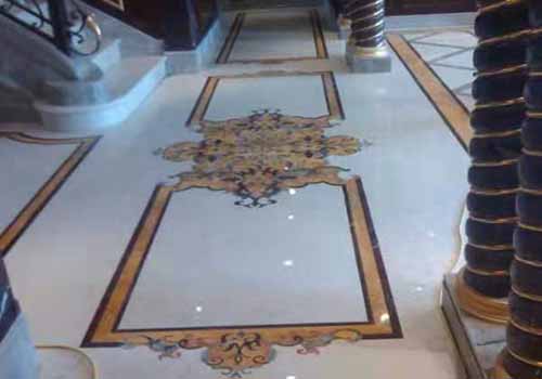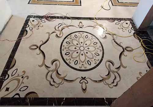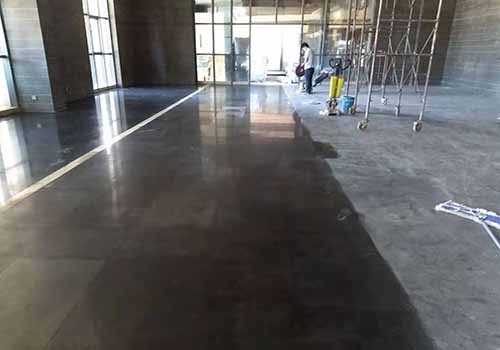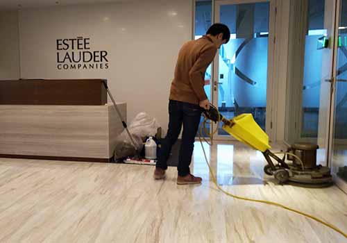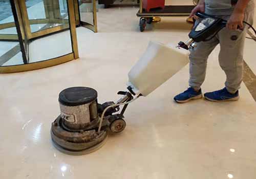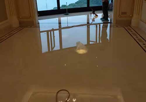 使用大理石翻新机配合专用研磨片对石材表面进行深度打磨。