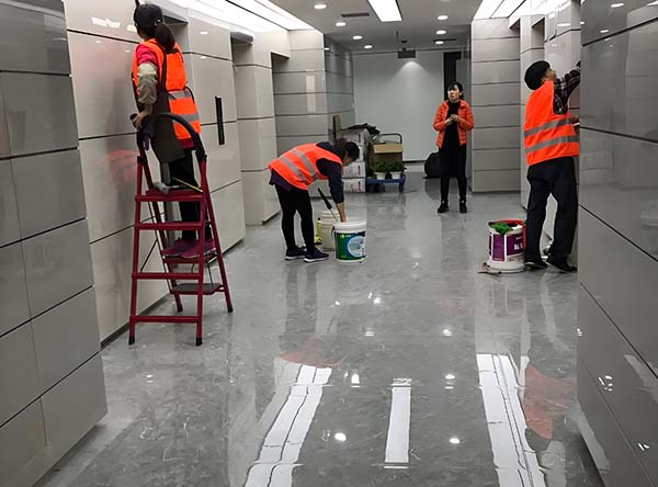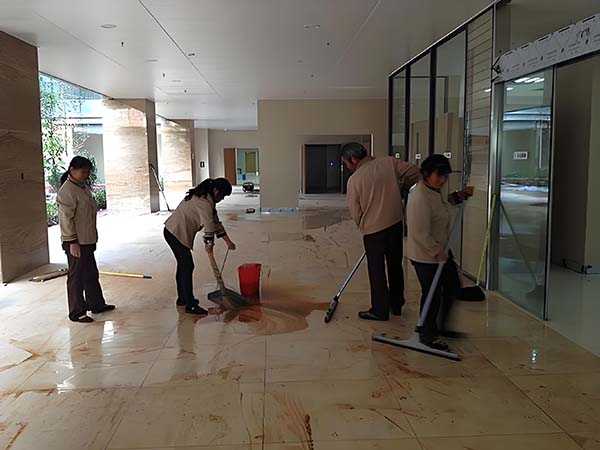 开荒保洁玻璃的标准:目视无水痕、无手印、无污渍、光亮洁净。 开荒保洁使用本技术可大大提高石材的使用寿命及防水、防油、防污、增亮、加硬的效果。