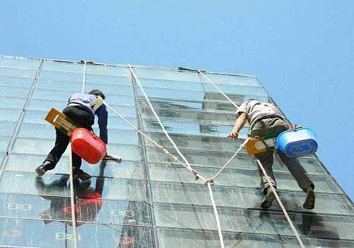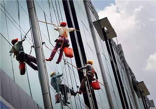 上海玻璃幕墙清洗:包括湿洗、干洗和溶解洗。