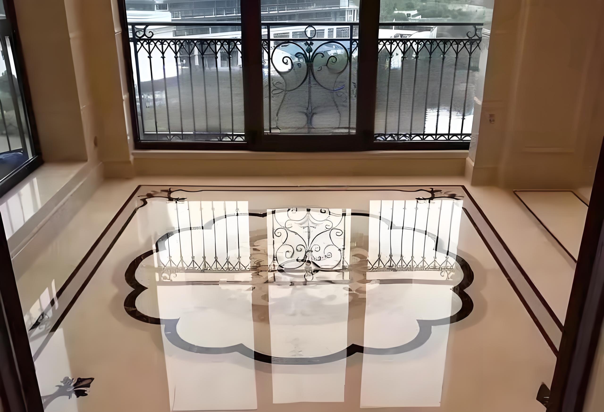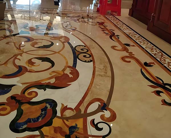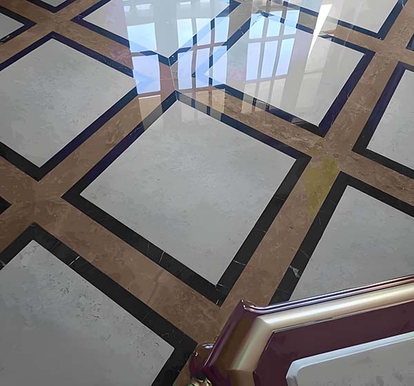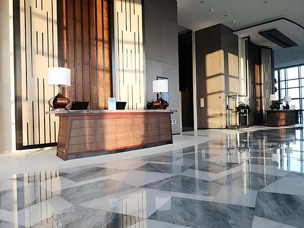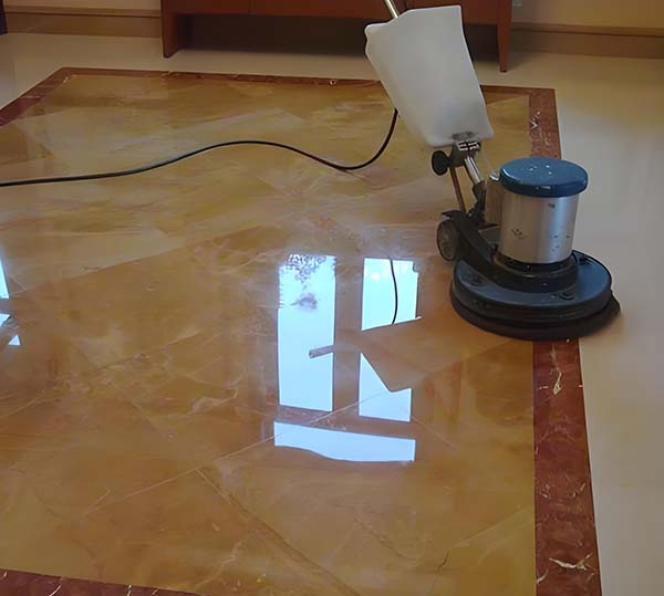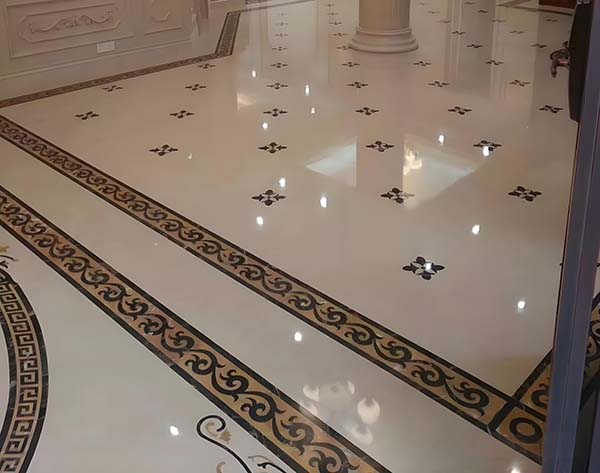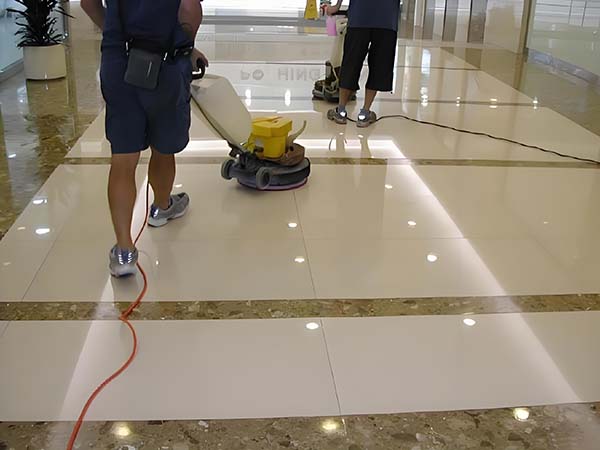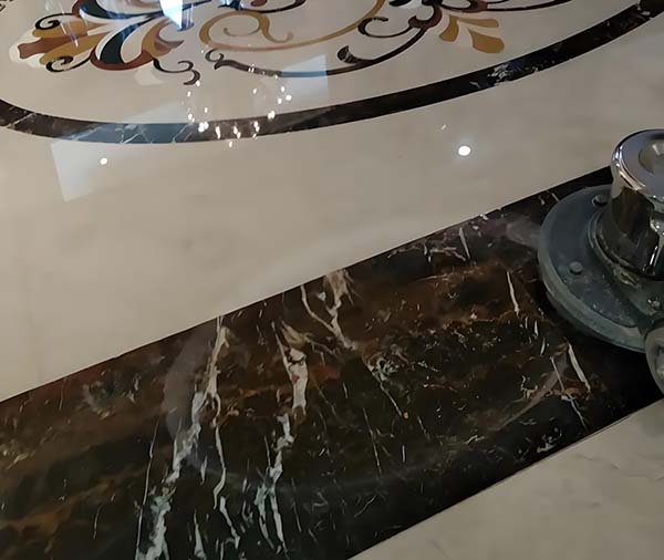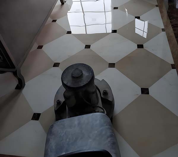 使用大理石翻新机配合专用研磨片对石材表面进行深度打磨。